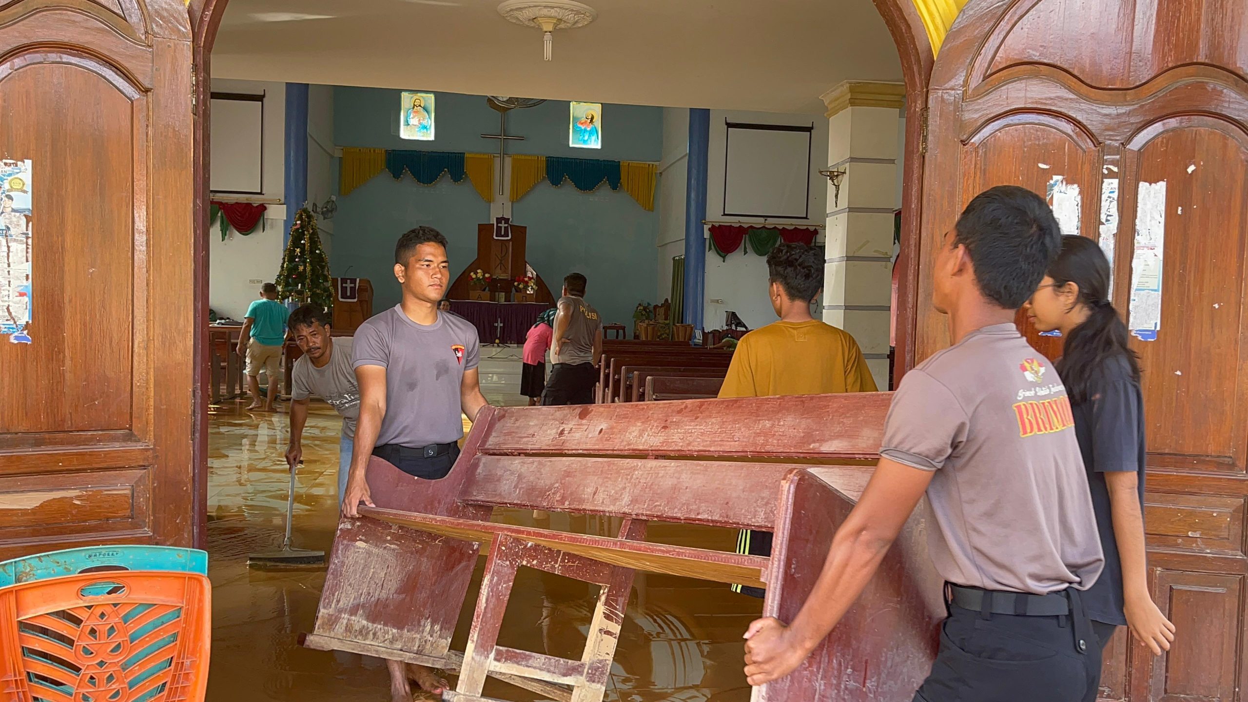 Pembersihan dilakukan secara menyeluruh, mulai dari area dalam gereja, halaman, hingga fasilitas pendukung lainnya yang terdampak material sisa bencana. Kegiatan ini dilaksanakan bersama pengurus gereja dan masyarakat setempat dalam suasana kebersamaan dan gotong royong.