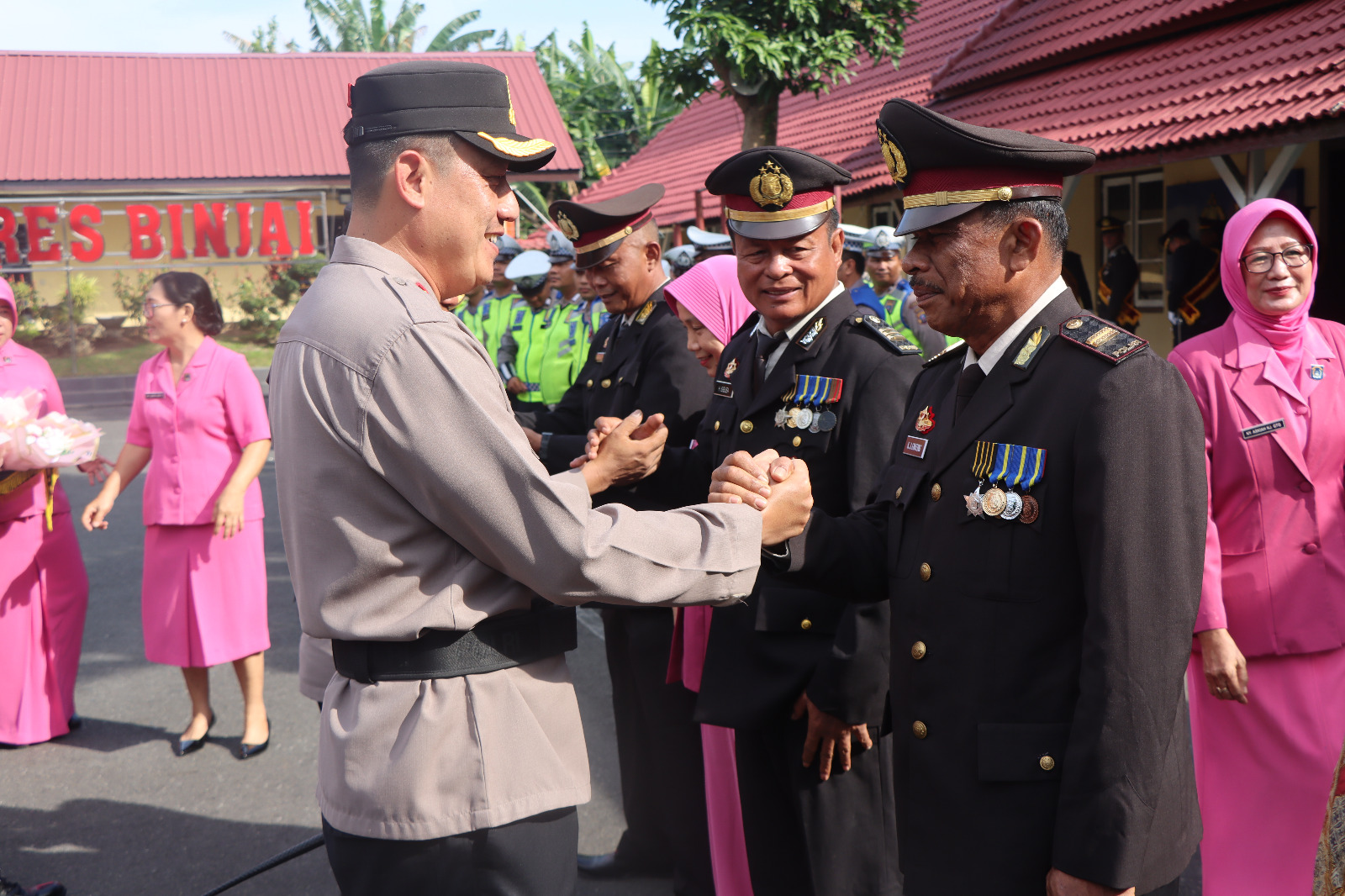 Polres Binjai laksanakan upacara pelepasan terhadap personil yang memasuki Masa Purna Bhakti di bulan Juli 2025 di lapangan apel polres Binjai, jalan Sultan Hasanuddin No.1 Binjai, Kamis (31/7/25) pukul 09.00 wib.