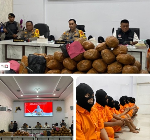 Adapun barang bukti yang berhasil diamankan meliputi narkotika jenis sabu seberat 9,01 gram dan ganja seberat 97.845,80 gram. Selain itu, turut disita sejumlah barang bukti pendukung berupa satu unit mobil Avanza warna hitam, tiga unit sepeda motor, sembilan unit handphone, delapan alat hisap sabu (bong), serta uang tunai sebesar Rp2.355.000.