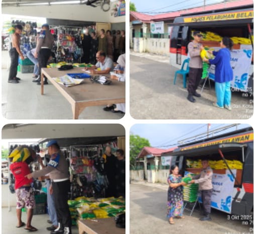 Belawan, BLINKISS– Polres Pelabuhan Belawan kembali melaksanakan kegiatan Gerakan Pangan Murah Polri pada Jumat, 3 Oktober 2025, dengan menjual beras SPHP dari Bulog kepada masyarakat. Kegiatan ini dilaksanakan di dua lokasi, yakni di Pajak Baru Belawan oleh Sat Binmas dan di Jalan Selebes oleh Polsek Belawan.