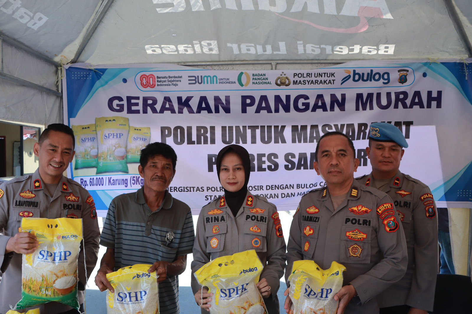 Polres Samosir sukses menggelar Gerakan Pangan Murah untuk masyarakat, dengan total penjualan mencapai 1,5 ton beras untuk hari pertama pelaksanaan.