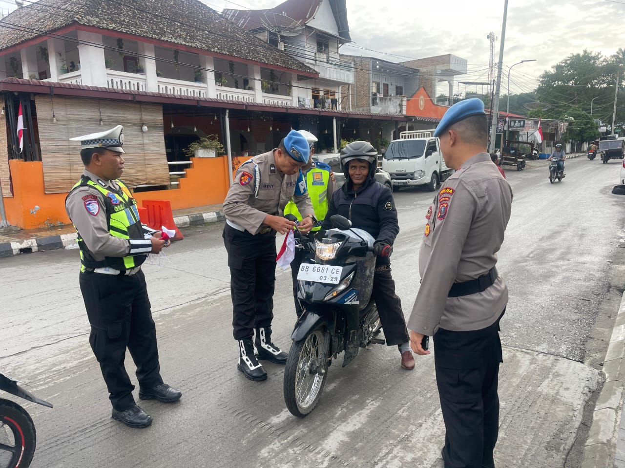 Polres Samosir Turun ke Jalan Pasang 50 Bendera di Kendaraan Warga