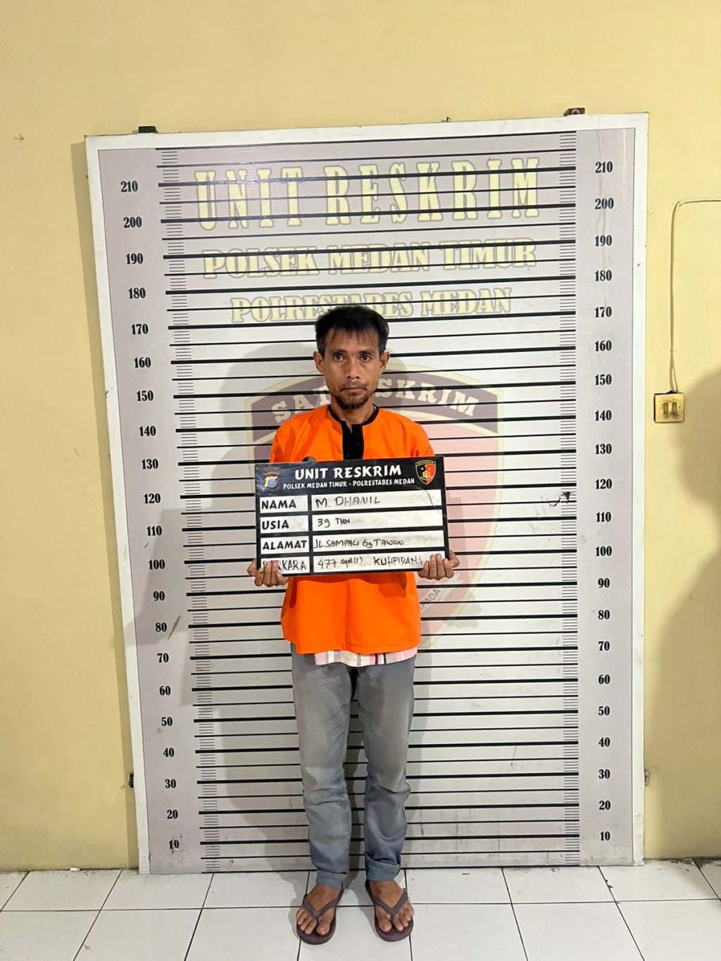 Pada pukul 23.00 Wib, Opsnal Reskrim Polsek Medan Timur didampingi Kanit Reskrim dan Panit Reskrim langsung ke TKP dan melihat pelaku kemudian mengamankan pelaku selanjutnya memboyong ke Polsek Medan Timur.
