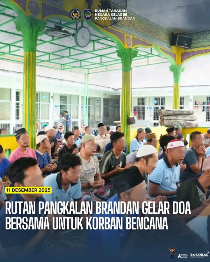 Rumah Tahanan Negara Kelas IIB Pangkalan Brandan menggelar doa dan pembacaan Yasin bersama untuk para korban bencana banjir pada Kamis, 11 Desember 2025. Kegiatan berlangsung serentak di Masjid Rutan, Gereja Rutan, serta Lapas I Medan.