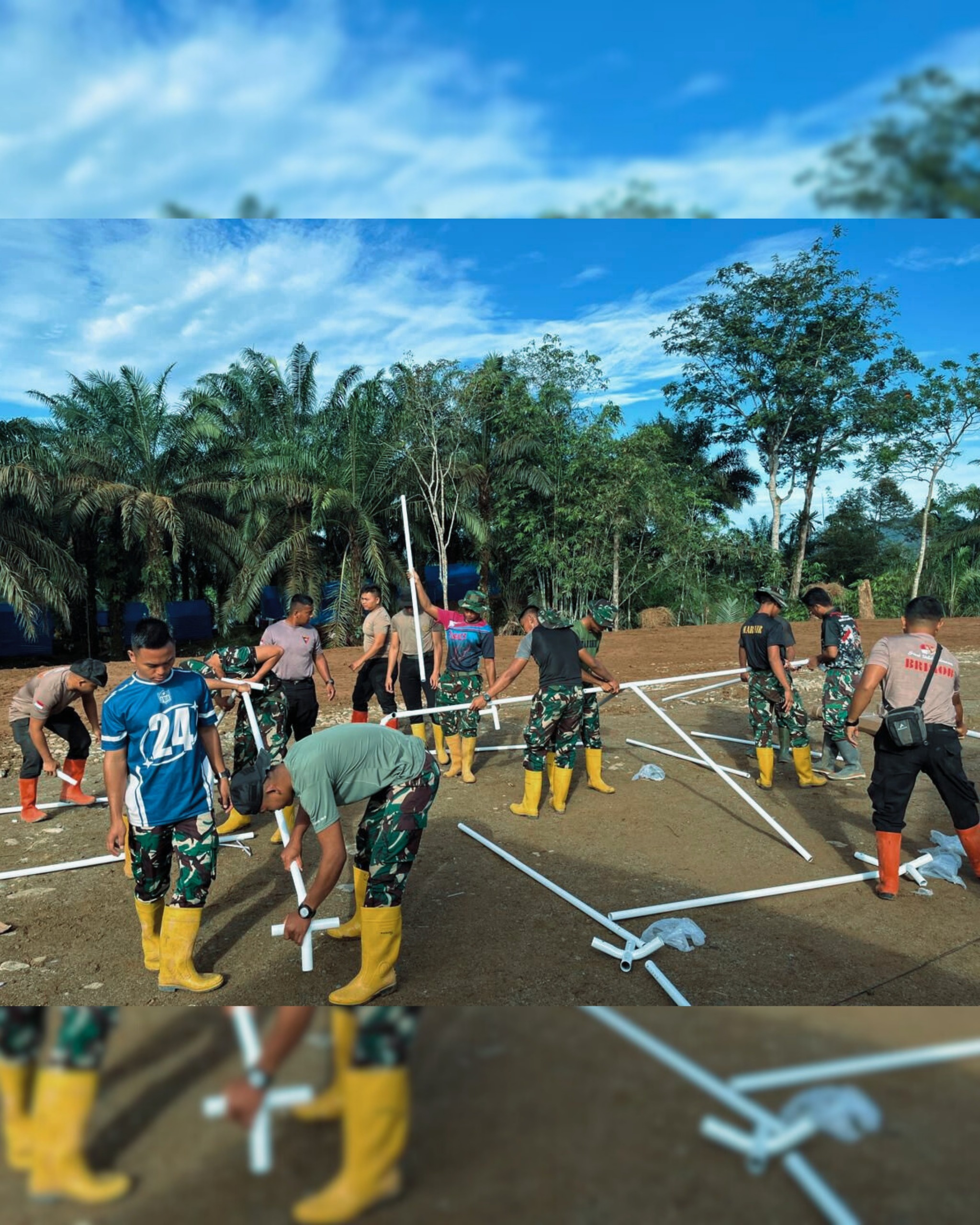 Di Desa Garoga dan Desa Huta Godang, personel Peleton 1 melaksanakan pembersihan rumah dan halaman warga yang terdampak material lumpur serta sisa banjir. Sementara itu, Peleton 2 mendirikan tenda hunian sementara bagi warga terdampak di Desa Batu Hula sebagai langkah awal pemulihan tempat tinggal. Di lokasi lain, Peleton 3 melaksanakan pembersihan rumah warga di Desa Huta Godang serta mendirikan tenda posko di Desa Napa untuk mendukung koordinasi dan pelayanan di lapangan.