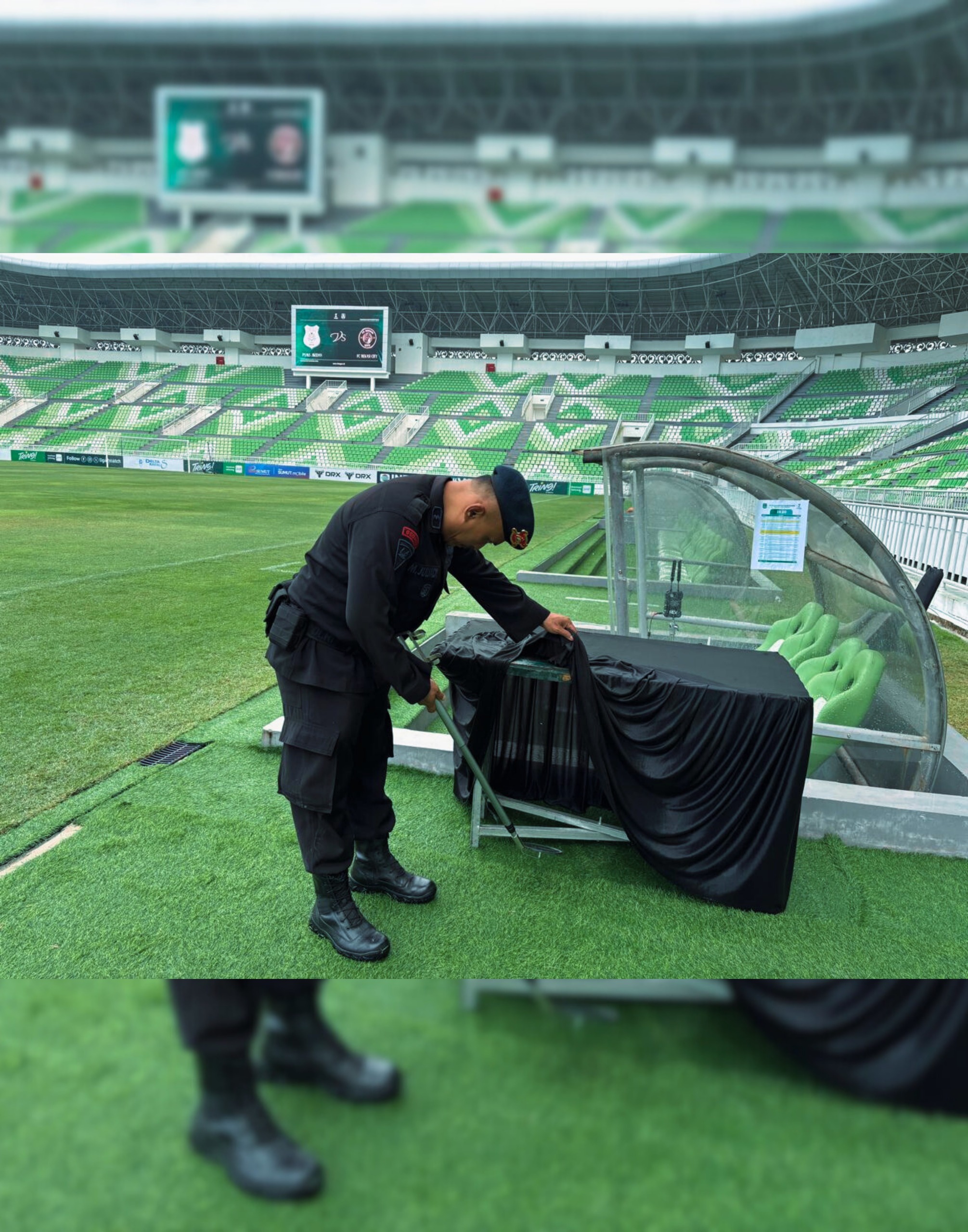Kegiatan ini merupakan langkah preventif Polri untuk mengantisipasi potensi ancaman serta menjamin situasi tetap aman dan kondusif selama berlangsungnya pertandingan. Dipimpin oleh PANIT 1 Jibom Den Gegana IPDA Jujun L. Berutu, S.H., satu tim Jibom KBR yang terdiri dari personel terlatih dikerahkan untuk melakukan pemeriksaan secara detail dan profesional.