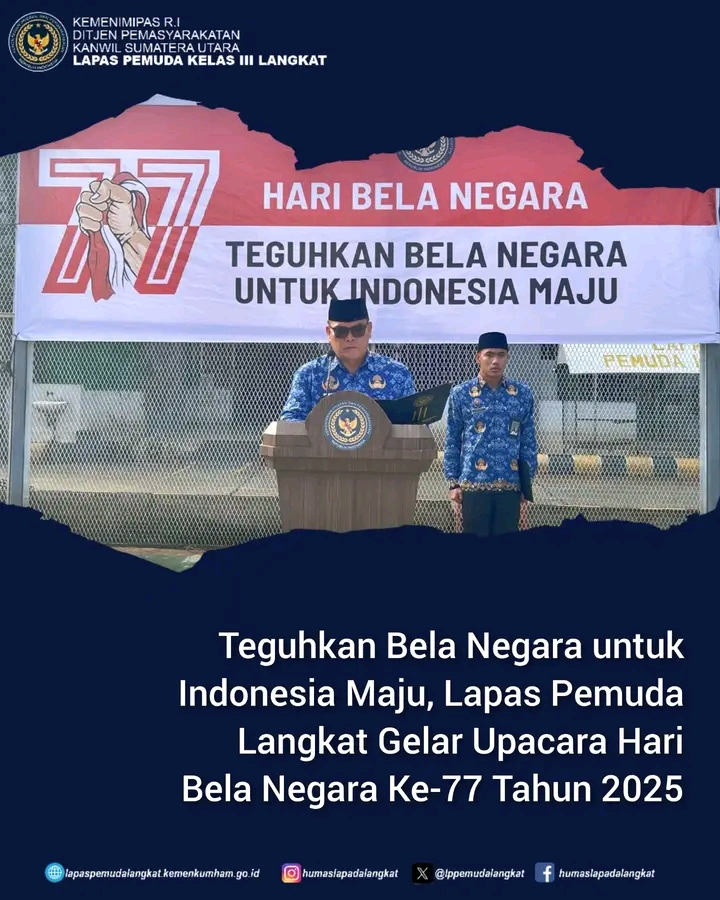 -Lembaga Pemasyarakatan Pemuda Kelas III Langkat menggelar Upacara peringati Hari Bela Negara ke-77 Tahun 2025 yang diselenggarakan di Lapangan Upacara Lapas Pemuda Langkat, Jumat (19/12/2025).