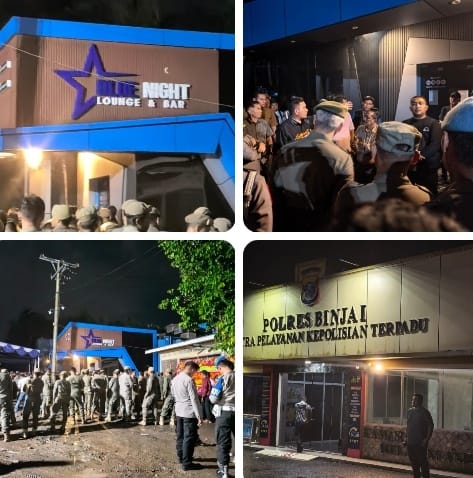 Langkat, BLINKISS– Tempat Hiburan Malam (THM) Blue Night Lounge dan Bar di Dusun Ban Rejo, Desa Emplasemen, Sei Bingai, Kabupaten Langkat, disegel Tim Gabungan pada Selasa malam, 25 November 2025. Penindakan dilakukan karena adanya dugaan praktik peredaran narkoba serta tidak adanya izin keramaian dan PBG.