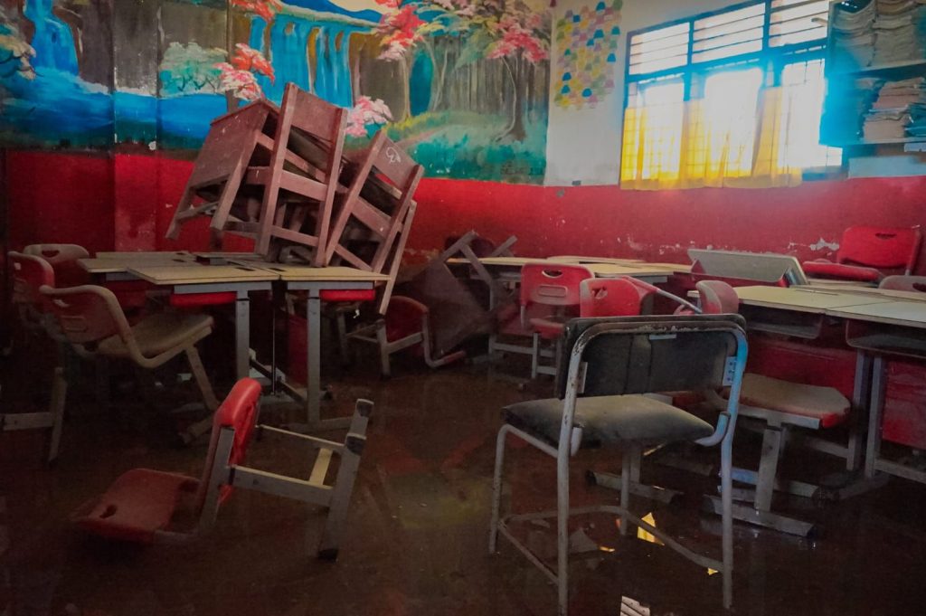 “Kita lihat kondisi sekolah sampai saat ini masih terendam banjir, beberapa peralatan peraga, termasuk smartboard dan ruang -ruang kelas belum dalam kondisi baik, masih penuh lumpur,”kata Rico Waas.
