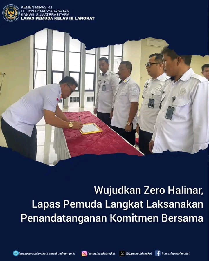 Wujudkan Zero Halinar,Lapas Pemuda Langkat Laksanakan Penandatanganan Komitmen Bersama