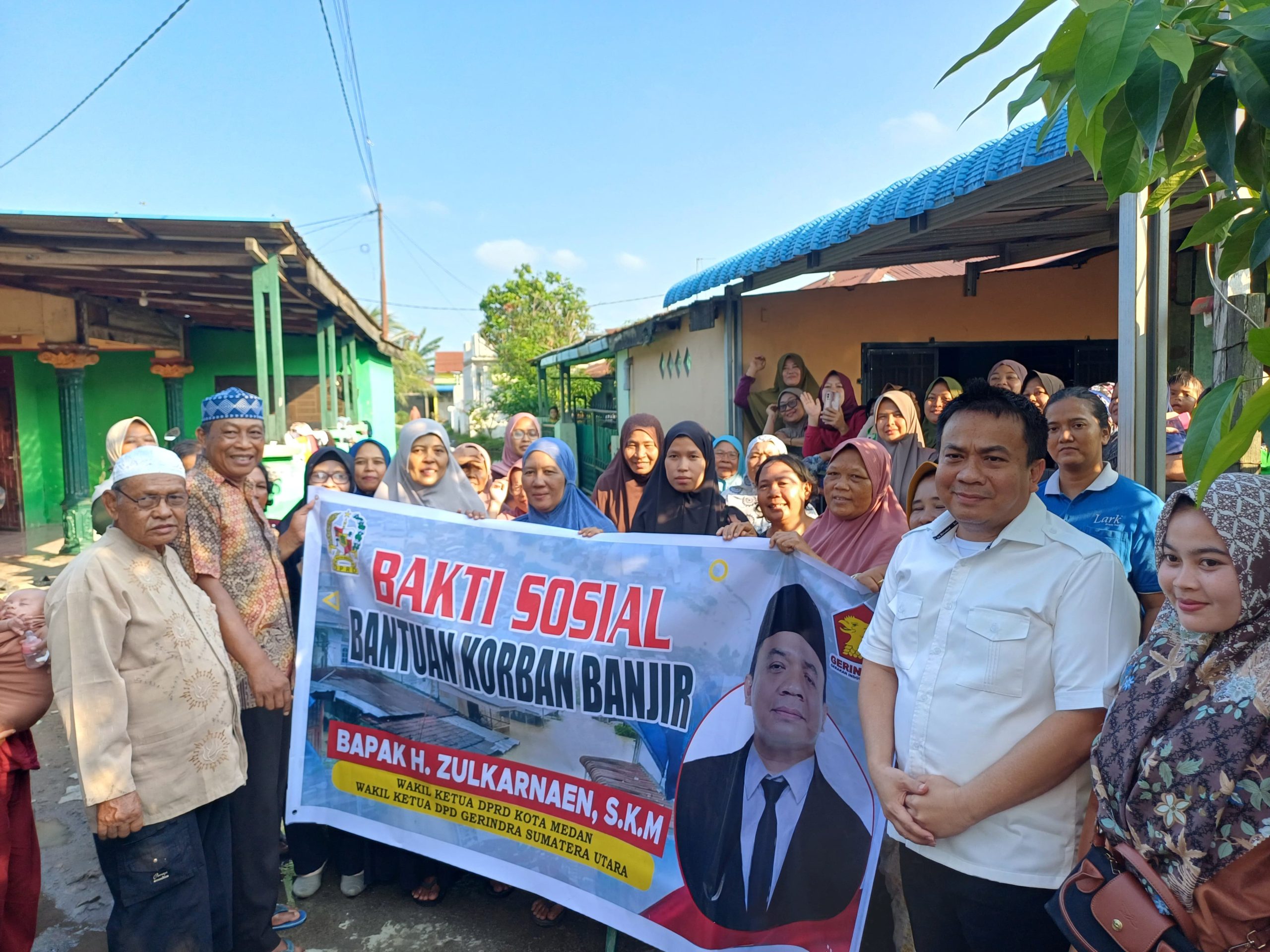 Wakil Ketua DPRD Kota Medan dari Fraksi Partai Gerindra, H. Zulkarnaen S.K.M, menyerahkan bantuan bahan pangan kepada warga Kota Medan yang terdampak banjir. Bantuan tersebut diberikan Zulkarnaen kepada ratusan warga di tiga lokasi pada Senin (1/12/2025).